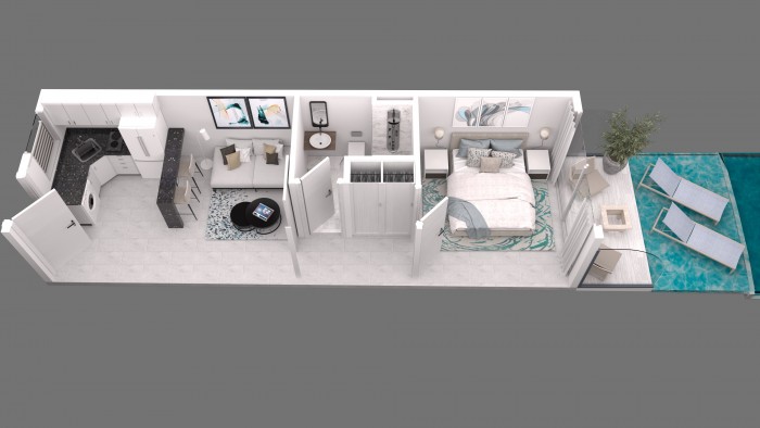 Proyecto de Apartamentos de 1 Habitación en Venta es una combinación relajante de un edificio moderno con la naturaleza circundante, localizado en medio del famoso Hard Rock Golf Club en Cana Bay, diseñado por el afamado golfista Jack Nicklaus.