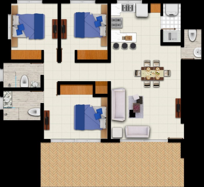 El proyecto de 48 Apartamentos distribuidos en 8 edificios , 28 unidades de 2 dormitorios y 4 unidades de 3 dormitorios, 14 unidades de pent-house de tres dormitorios y dos unidades de pent-house de 4 dormitorios.