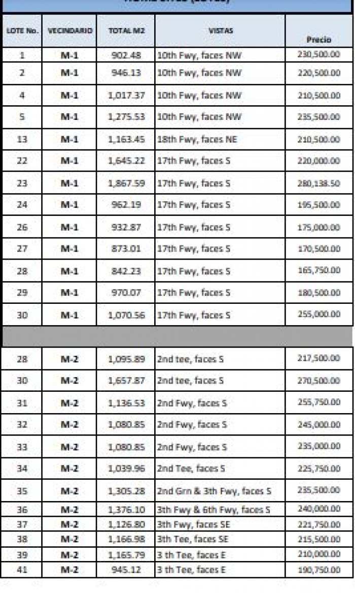 Solares desde 873 a 1,600 metros (Favor ver Listados de precios en la imagen)