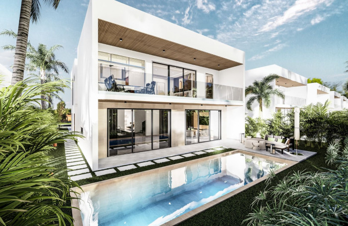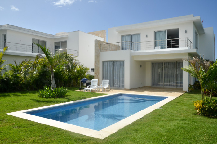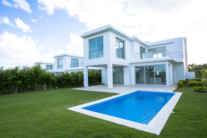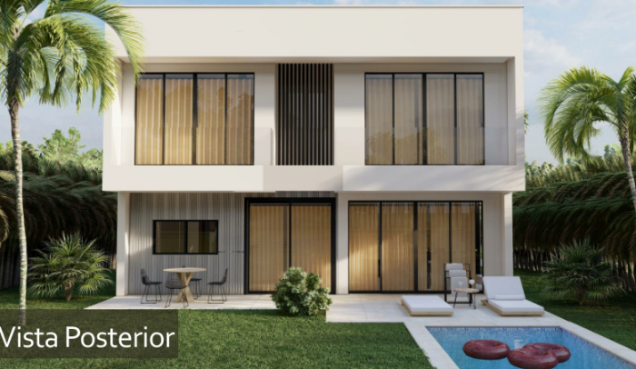 Villas de lujo en la zona más exclusiva de Playa Nueva Romana. Situadas en el privilegiado Residencial Bahía y a tan sólo unos pasos de la playa. Lote desde 745 m2, Superficie de 369 m2 construidos, Tres dormitorios y tres baños, Dormitorio de Servicio, Piscina privada.