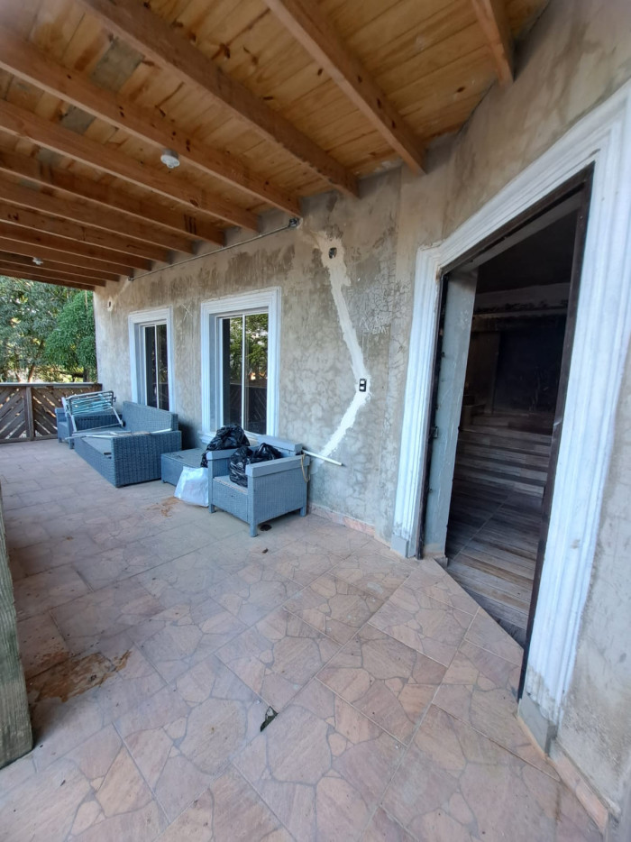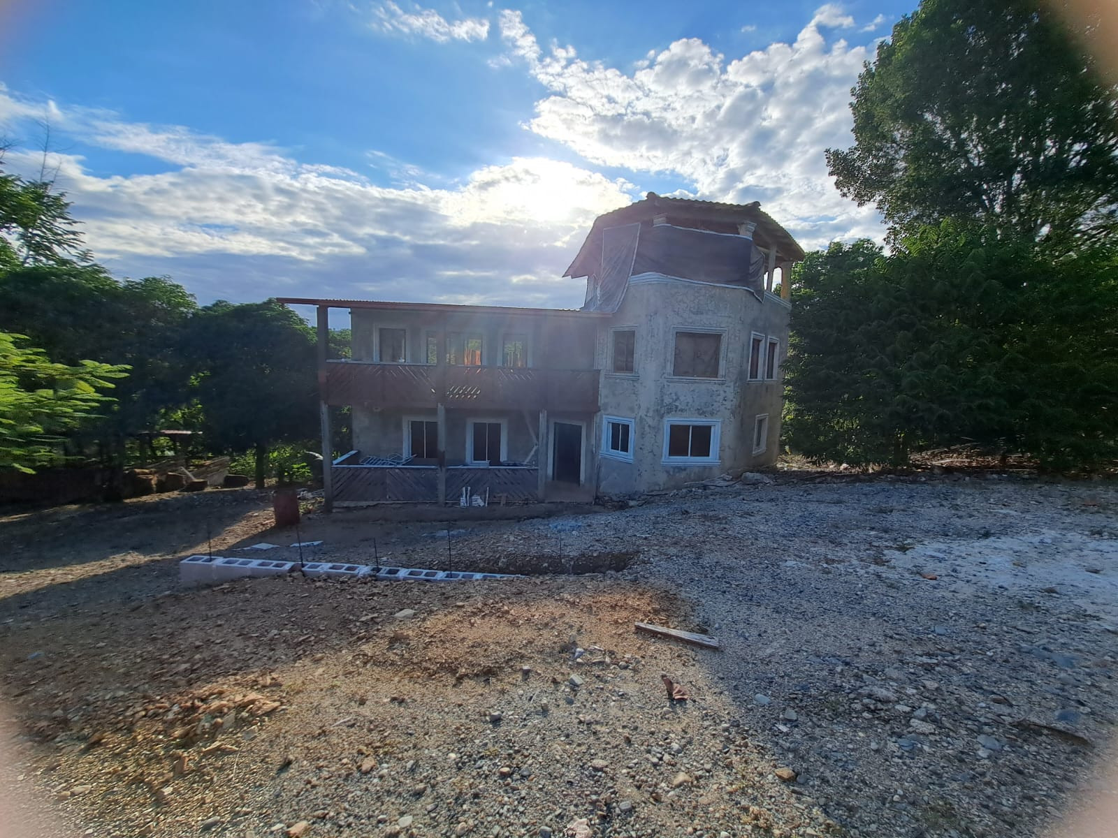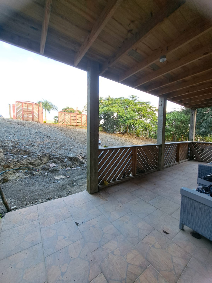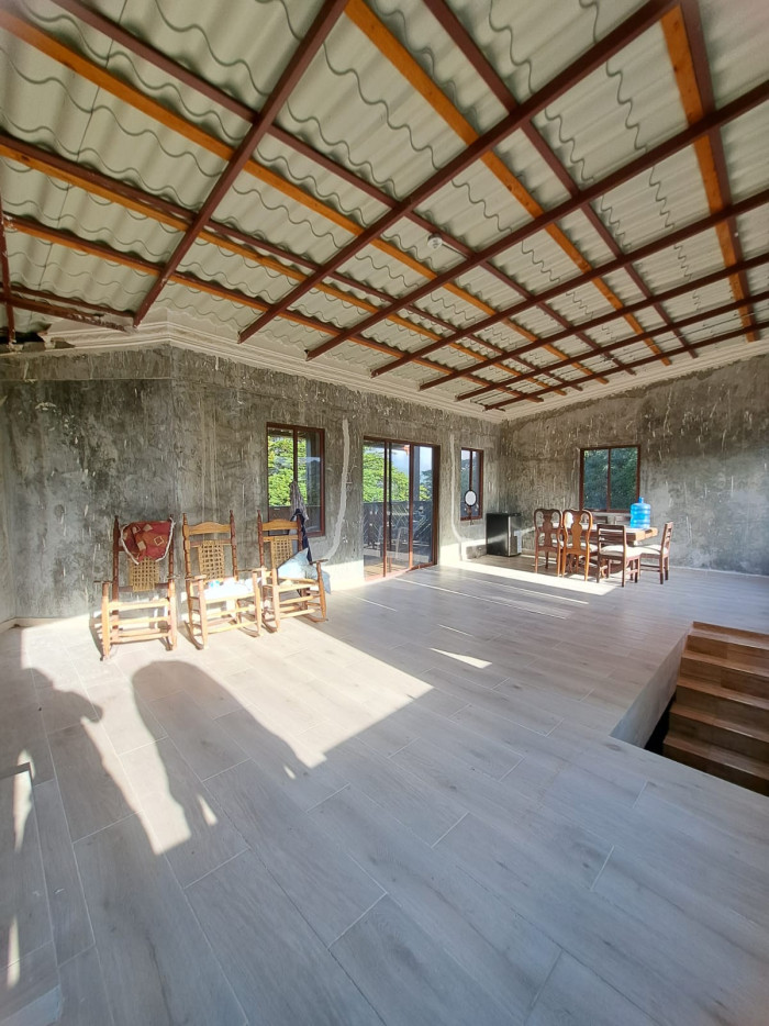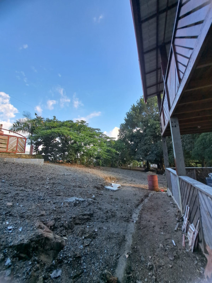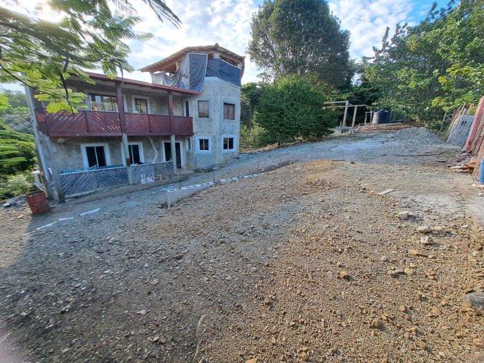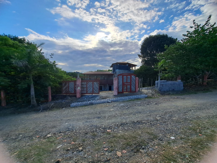 Una construcción de villa de 3 niveles, primer piso tenemos habitación amplia, con su baño, cocina, balcon, 2do piso hab principal con su baño y WC, family, y balcón con vista a la montaña, tercer piso terraza pricasa techada, pisos en madera, cisterna 10 mil galones, instalación eléctrica, pozo séptico, techo aluzinc tipo teja, piso cerámica española, terreno, 2,500 metros y de construcción 650 metros..