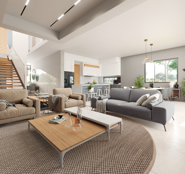Residencial de villas duplex con un diseño contemporáneo enfocado en la experiencia de habitar espacios cómodos y holgados, cubriendo las necesidades de la familia actual para una estadía placentera , tanto en su día a día o durante sus vacaciones.