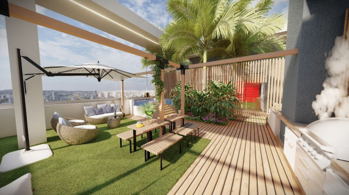 Terraza social con piscina