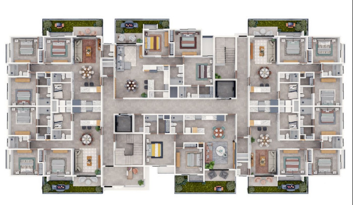 Torre tipo A: 11 niveles, 6 apartamentos por nivel, Apartamentos de 2 y 3 habitaciones