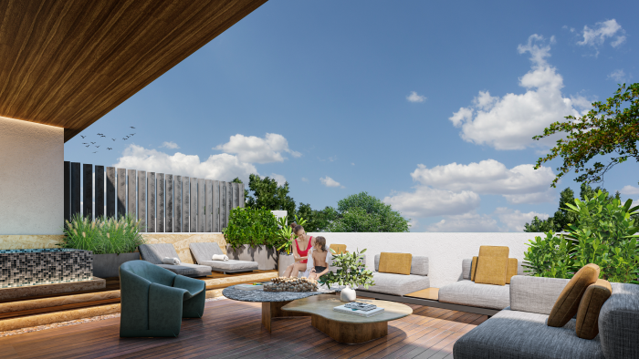 en el 1.º piso y disfrutar de una terraza privada con jacuzzi en la azotea por un precio Adicional.