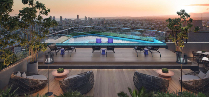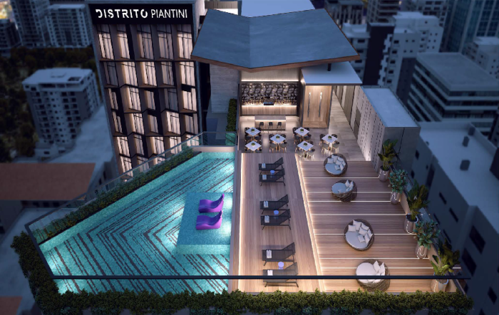 En el piso cinco, estratégicamente está ubicado el gimnasio, una terraza de dos metros, deck y piscinas. Finalmente, en el nivel destinado para el área social se encuentra la piscina infinita, deck, salón multiusos, bar del hotel, gimnasio, bar, baños y demás espacios creados para ofrecer una estadía placentera.