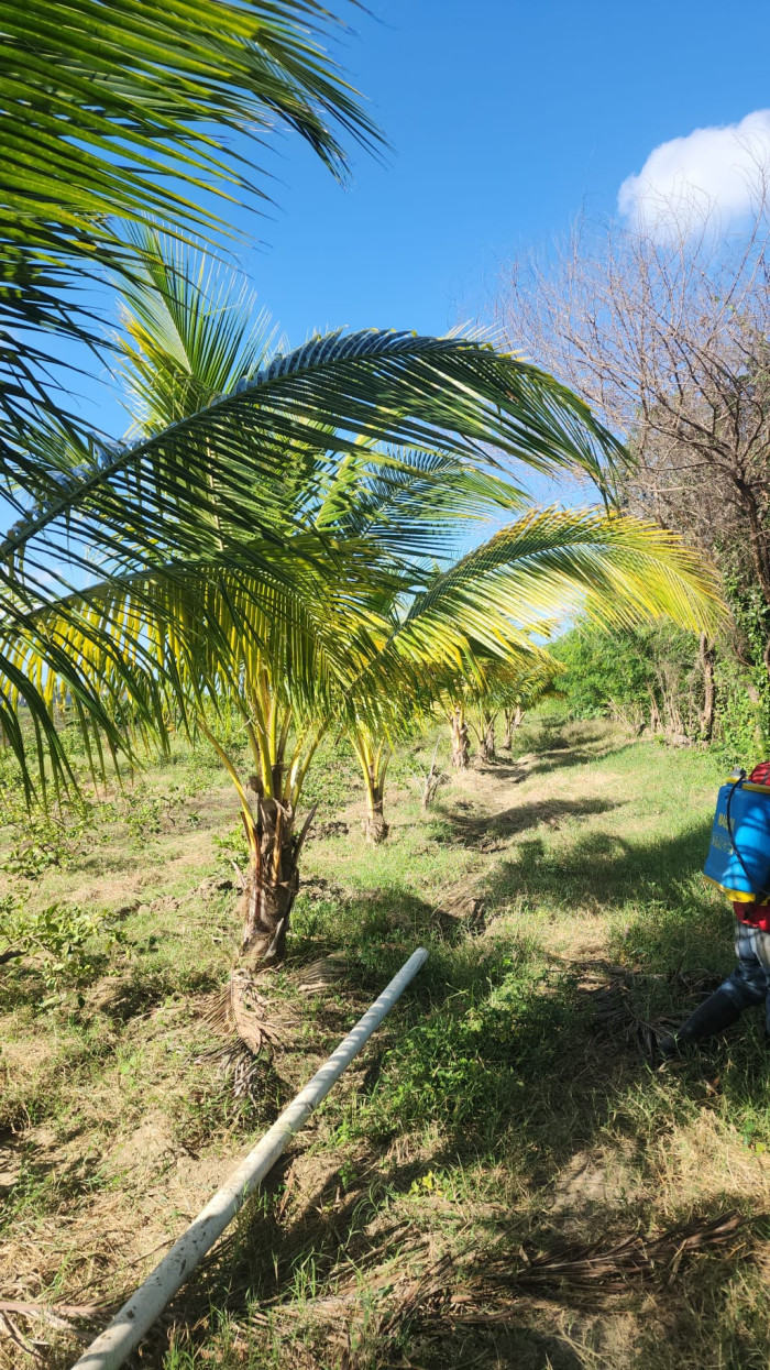 ? Aproximadamente 300 matas de coco enano, próximas a entrar en producción.