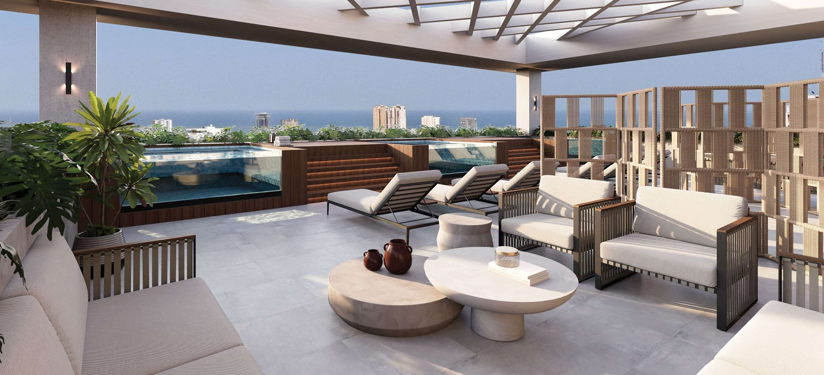 Rooftop en el piso 26 con jacuzzis, BBQ y horno de pizza