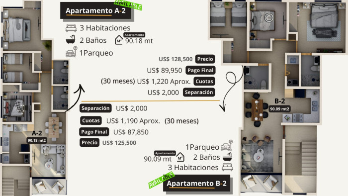 El proyecto contara con 13 unidades en total, desde aparta estudios hasta penthouses, con metrajes que van desde 33.5 hasta 136mt2 de construccion, las unidades incluiran 1 parqueo. Con 1 y 3 habitaciones.
